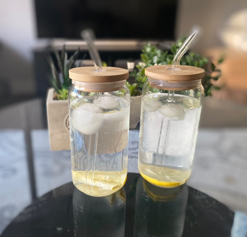 This cup comes with a Lid and a Glass Straw. The straw is long enough to suck all the lusciousness at the bottom of your cup. The cup and straw are dishwasher safe but the lid is hand wash only.