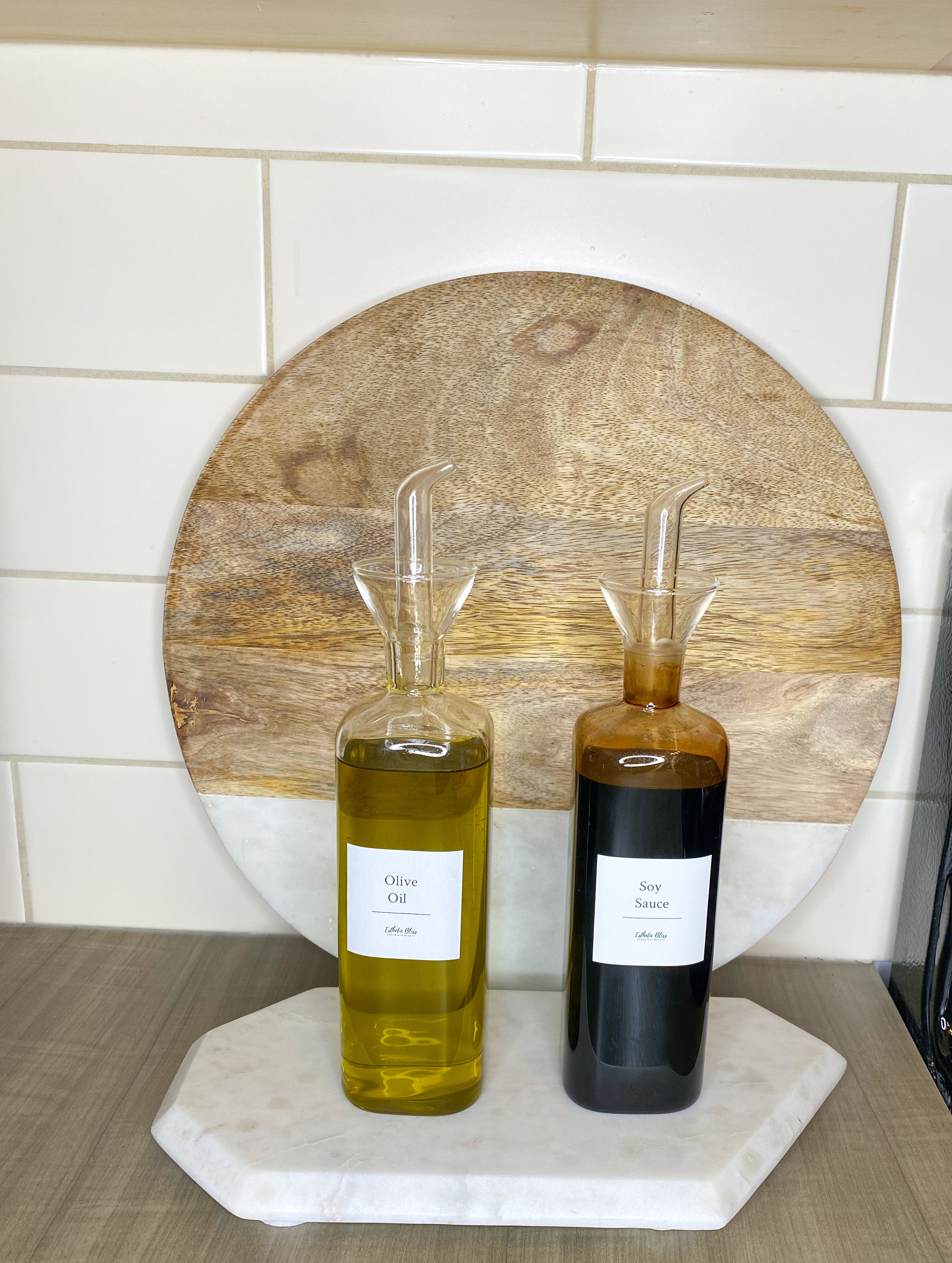 High borosilicate glass bottle with circular nozzle for a drip free pour. Perfect for oil, vinegar and soy use. These will look great on any kitchen despite color schemes.