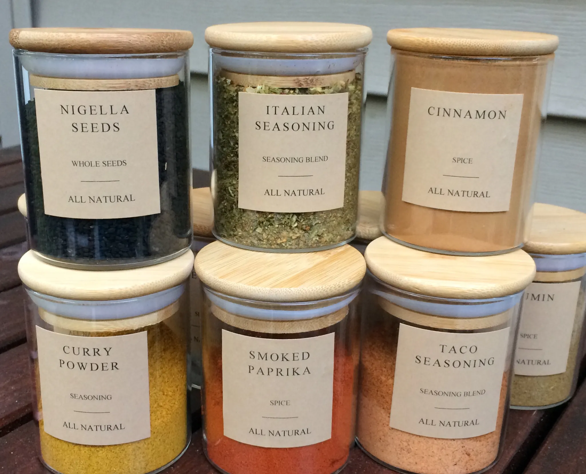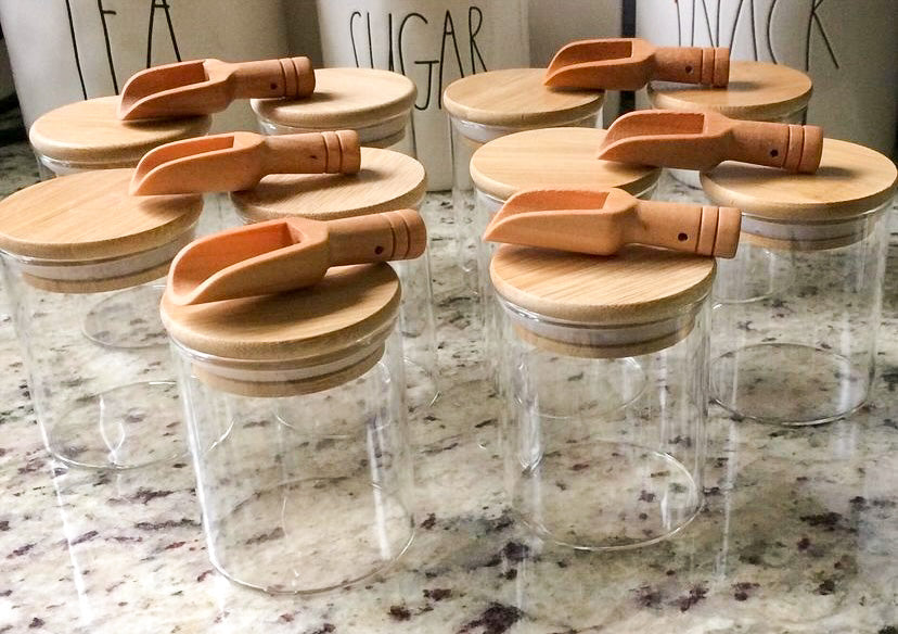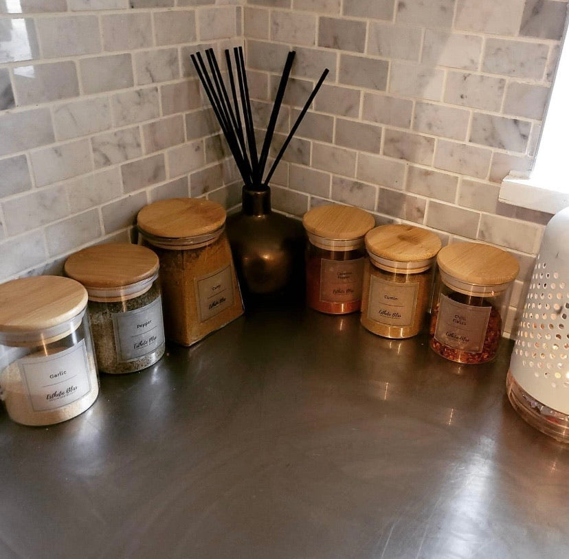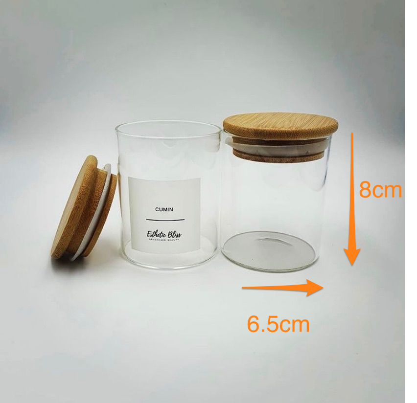 175ml glass jar with a bamboo lid. The Seal on the lid keeps your contents fresher for longer. Jars are dishwasher safe. Hand wash lid and dry thoroughly before re-use. All labels customizable. Please leave us a note in special instructions at checkout for your label identifier/s.